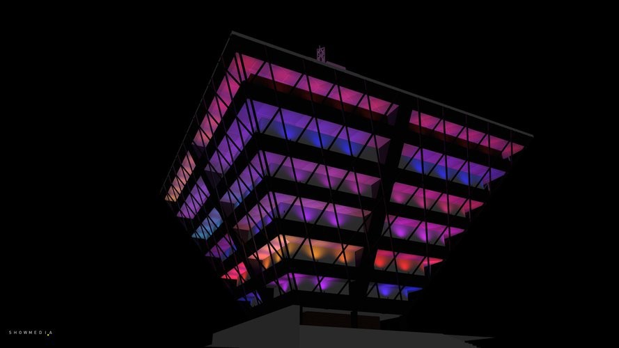 Jedna z najvýraznejších stavieb hlavného mesta sa opäť stane aj jednou z dominánt Bielej noci. Obrátená pyramída sa v nočných hodinách rozžiari farebnými svetlami, v ktorých naplno vyniknú jej stupňované vrstvy. Audiovizuálna inštalácia vytvorená špeciálne pre budovu Slovenského rozhlasu zároveň prinesie aj interaktívny rozmer, odkazujúci práve na rozhlas a šírenie zvuku. Obrovský megafón umiestnený pred budovou umožní na chvíľu vymeniť zaužívané roly - tento raz bude rozhlas počúvať zvyčajne načúvajúce publikum.