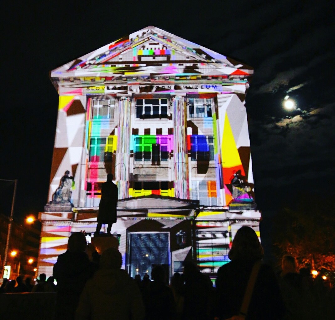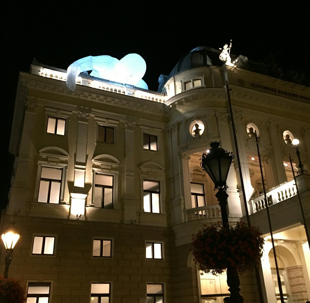 Svetelná postava bola umiestnená aj na historickú budovu SND.