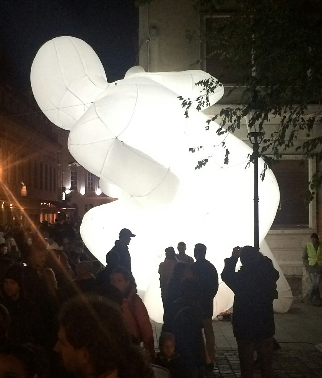 Obrovská svetelná postava bola dominantou pešej zóny.