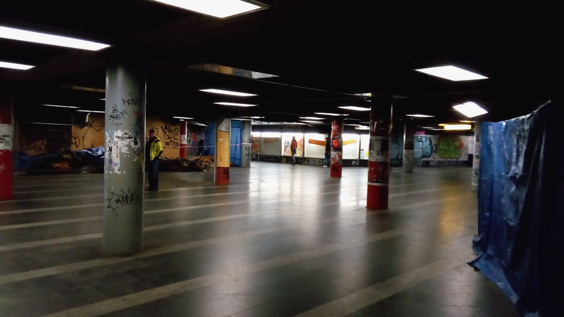 „Stavebné práce sú z dôvodu veľkej prašnosti a hlučnosti vykonávané len vo večerných hodinách. V súčasnosti pozostávajú predovšetkým z demontáže podhľadových líšt, voľne vloženej tepelnej izolácii, nosnej konštrukcii hliníkového podhľadu a vnútorných obchodných priestorov v strede podchodu. Demontážne práce sú vykonávané manuálne, keďže búraciu techniku v podchode nie je možné využiť. Od 16.10. do 13.11. 2017 sa v podchode vykonávajú len lokálne izolované práce, ktoré sú zabezpečené a oddelené od chodcov plachtami, pričom je tu koridor vyznačený páskou, v ktorom sa môžu chodci pohybovať. Po 13.11. 2017 v podchode plánujeme pre chodcov koridor, ktorý bude vyhotovený už samostatnou stavebnou konštrukciou. Prvé obmedzenie pohybu chodcov a uzavretie prvého vstupu do podchodu a nástupišťa predpokladáme od 1.12.2017,“ reagovala na naše otázky spoločnosť Immocap Group.
