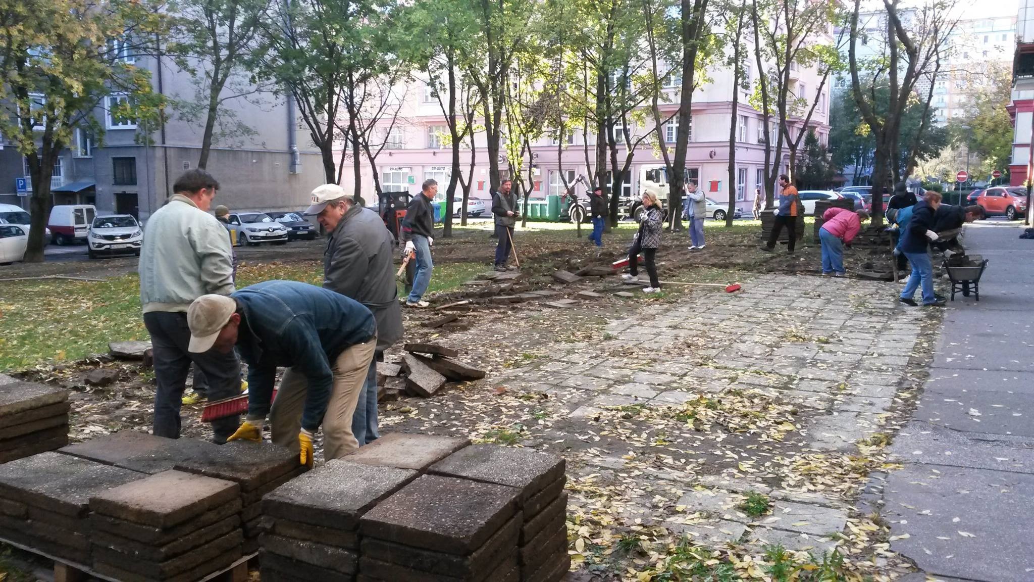 Brigáda pri odstraňovaní starej dlažby...