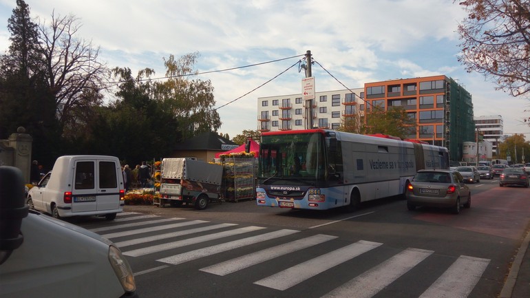 - linka 202 z Rajskej, Autobusovej stanice, Prievozu (presun cez priechod pre chodcov so svetelnou signalizáciou)