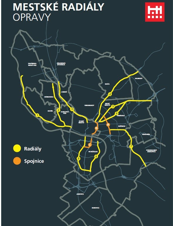 FOTO: Hlavné mesto chce do konca roka 2021 obnoviť deväť hlavných bratislavských radiál. Ktoré to sú?