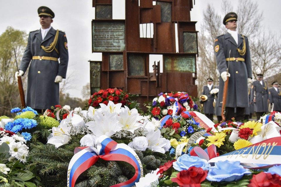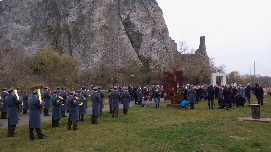 Spomienka spojená s kladením vencov sa z bezpečnostných dôvodov nekonala pri pamätníku Brána slobody, ako bolo pôvodne plánované, ale pri niekoľko metrov vzdialenom Pamätníku železnej opony. Ten v Devíne v roku 2008 odhalila britská kráľovná Alžbeta II. Prvý spomínaný pamätník sa totiž nachádza blízko hradného brala, a priestor okolo neho je dočasne uzavretý pre nebezpečenstvo padajúcich skál.