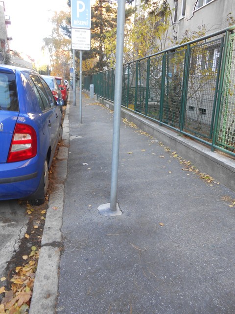 „Treba požiadať firmu, ktorá povrchne vykonáva v Bratislave odstránenie tyčí z chodníka, ktoré predtým osadili, aby tieto nedostatky odstránili aj s betónom na úroveň chodníka , teda dať chodník do pôvodného stavu skôr ako začne zima. Alebo sa na to čaká, kým trčiace nástrahy zakryje sneh a na to niekto spadne?“