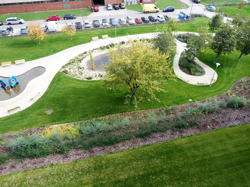 Ako ďalej uviedol, pri budovaní parčíka sa snažili v maximálnej miere využiť prírodné materiály. Chodníky preto nie sú asfaltové či betónové, ale časť z nich je zo žulového materiálu z Českej republiky a časť má mlatový povrch, teda vodopriepustné povrchy. Zároveň bola zrevitalizovaná zeleň, stromy a trávniky, pribudlo detské ihrisko a hracie prvky, ako aj lavičky a priestor na oddych.