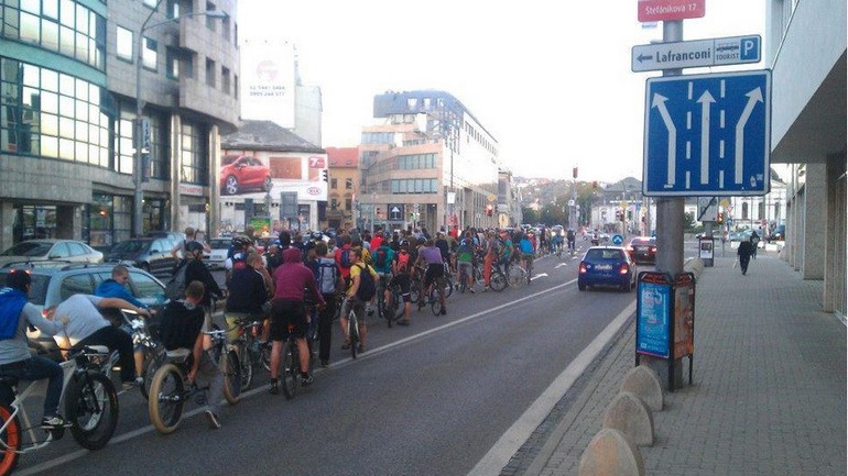 Dnešná jazda, ak by ste sa jej chceli zúčastniť, sa začína stretnutím na Námestí SNP o šiestej večer a potrvá cca do deviatej. Pokiaľ ide o trasu, účastníci sa na nej dohodnú krátko po začiatku stretnutia. Po trase vedúcej cez mesto sa následne pomaličky presúvajú v spoločnej mase, pričom sa v niektorých miestach čakajú. Jazda končí spoločným zdvihnutím bicyklov nad hlavu.