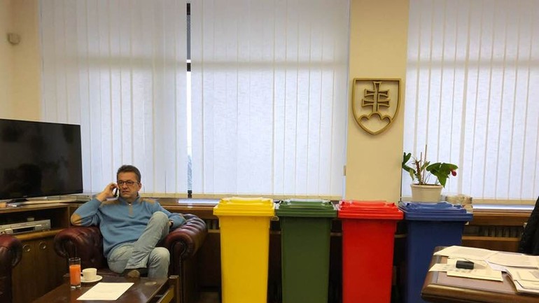Keď ráno vstúpil do kancelárie, čakali ho pod oknom štyri kontajnery na odpad. „Som rád, že konečne môžem separovať v kancelárii odpad. Doteraz som takú možnosť nemal,“ vtipkoval pre bratislavskenoviny.sk Glváč.
