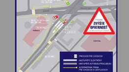 - Električkové nástupište č.1 bude uzatvorené = obchádzková trasa bude viesť náhradným priechodom na nástupište č.2
