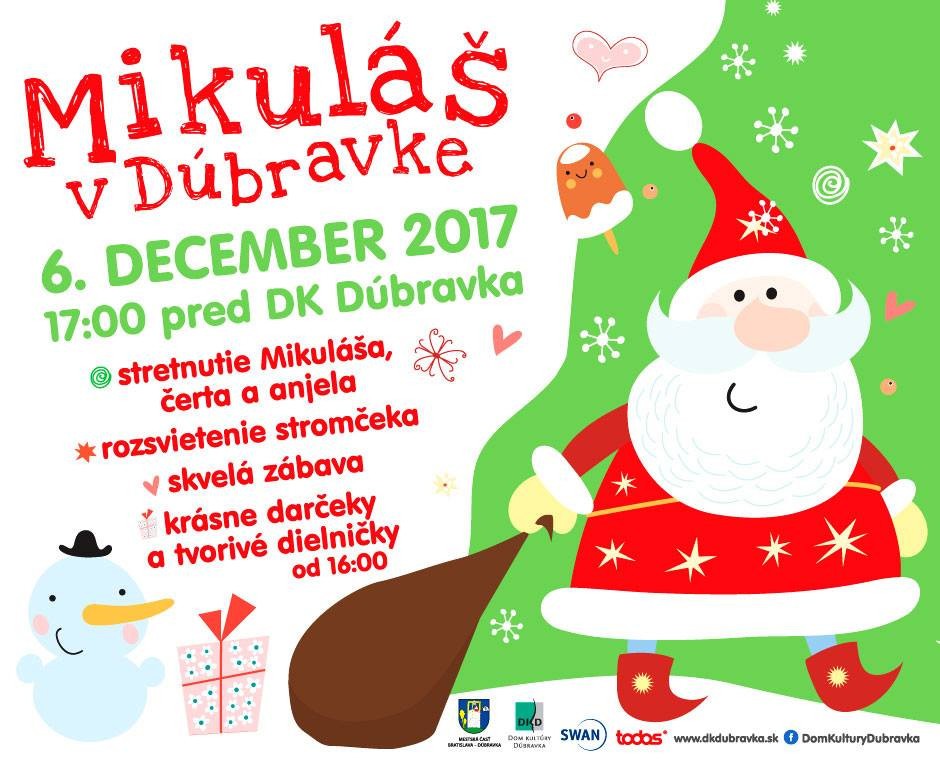 Blíži sa čarovný čas sviatkov strávený v kruhu najbližších a naplnený radosťou v očiach našich najmilších. Pre deti majú sviatky čarovnú moc, príde zázračný ujo Mikuláš a tri týždne po ňom zapĺňa priestor pod svetielkujúcim vianočným stromčekom Ježiško. Mikuláš príde do Dúbravky spolu s čertom a anjelom. Čaká vás skvelá zábava, tvorivé dielničky, krásne darčeky a v neposlednom rade rozsvietenie stromčeka.