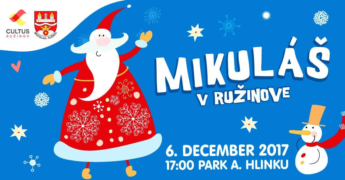 Mestská časť Bratislava-Ružinov a Cultus Ružinov vás pozývajú na podujatie Mikuláš v Ružinove, ktoré sa uskutoční v stredu 6.12.2017 o 17.00 h v Parku A. Hlinku. Mikuláš, Anjel a Čert nabalili veľa balíčkov plných sladkých maškŕt. Každé dieťa či už zlé alebo dobré dostane od Mikuláša balíček. Deti aj dospelí sa môžu tešiť na vystúpenie Karin Olasovej.