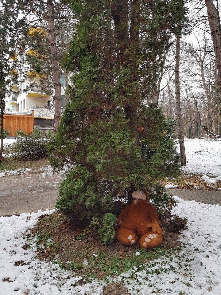 „Videla som v tme, že pod stromom na Kutlíkovej ulici sedí nejaká postava a trochu som sa jej aj zľakla. Na druhý deň ráno som išla opäť okolo Dostihovej drány a vtedy som zistila, že tam nesedí človek, ale plyšový Alf v životnej veľkosti. Hneď som si ho niekoľkokrát na mobil aj odfotografovala,“ napísala pani Jana k fotografiám, ktoré nám včera prišli mailom do redakcie Bratislavských novín. Podľa jej slov je z Alfa petržalský bezdomovec už minimálne dva týždne. A aj keď mu zima nie je, tak je trochu zarážajúce, že niekto pohodí plyšového Alfa len tak do lesa.