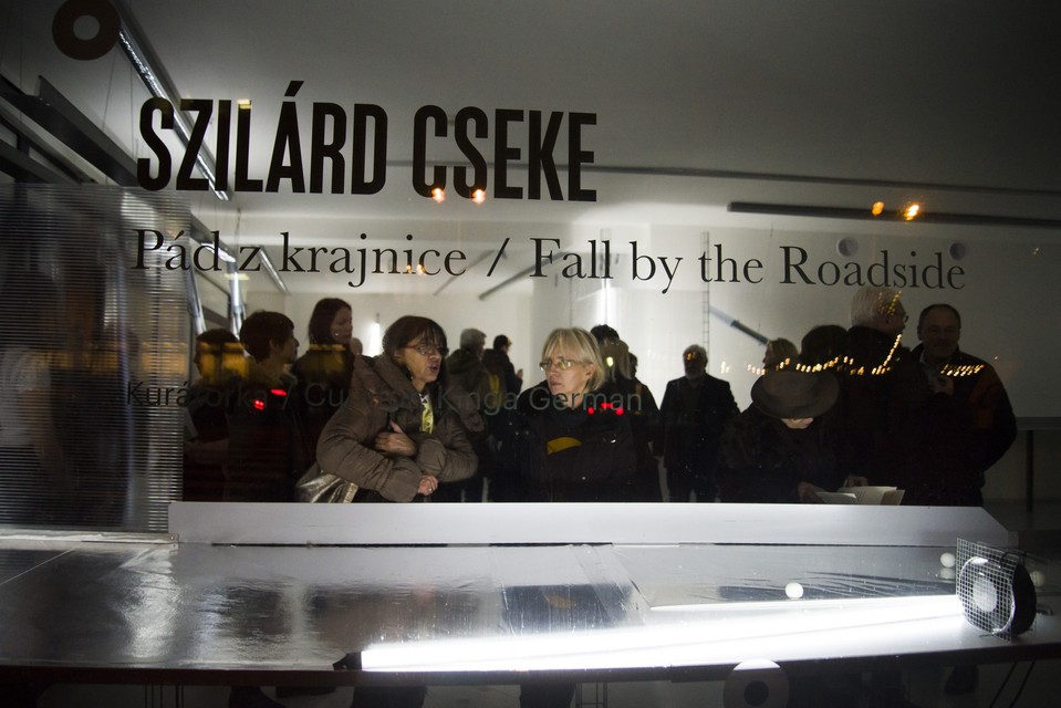 Dnes ako prvý uviedla projekt maďarského vizuálneho umelca Szilárda Csekeho, vytvorený špeciálne pre priestor Kunsthalle LAB. Obľúbený „window gallery“ space zaplnila site-specific inštalácia - kinetický model dráhy, na ktorý môžu aktívne reagovať samotní návštevníci. Kurátorkou výstavy s názvom Pád z krajnice je maďarská historička umenia Kinga German.