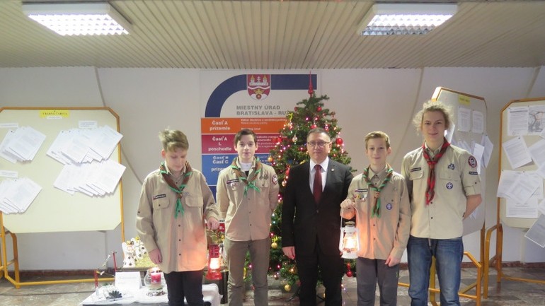 Betlehemské svetlo aj tento rok dorazilo do mestskej časti Bratislava-Ružinov. Skauti ho 21.decembra prinesli na miestny úrad, poputuje aj do Domova dôchodcov na Pažítkovej 2 a Ružinovského domova seniorov na Sklenárovej 14.