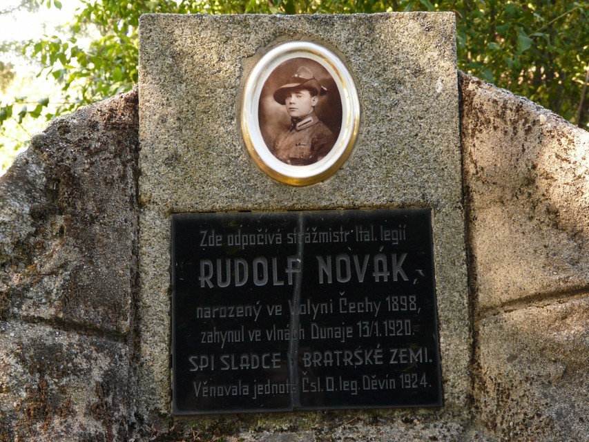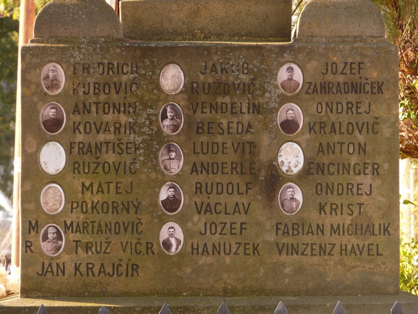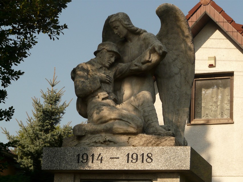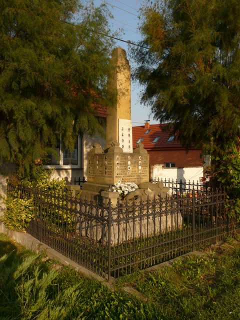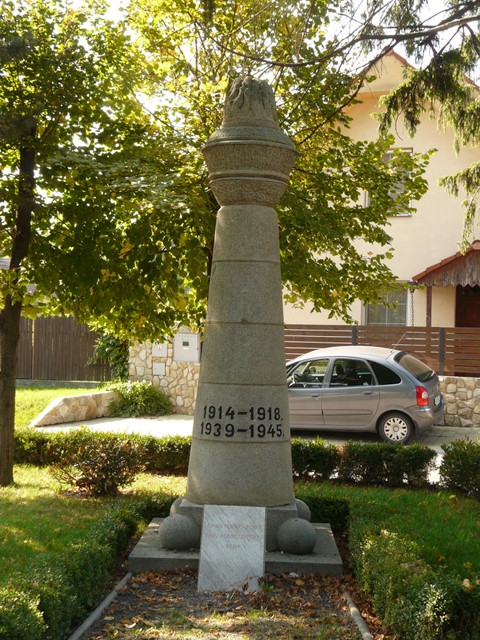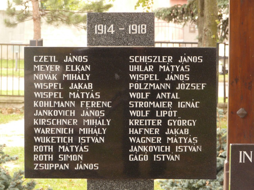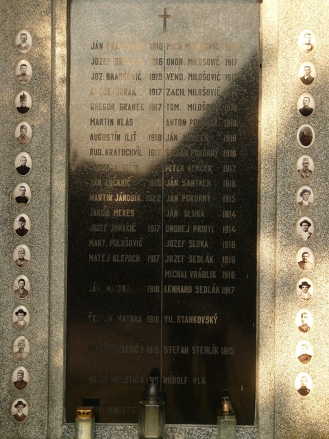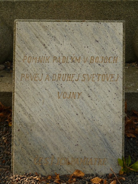 „Má podobu tomby (hrobky) so štyrmi polfigúrami levov ležiacich na rohoch, ktorých telá vytesal známy bratislavský sochár Alojz Rigele. Pripomína ukončenie prvej svetovej vojny 11.11.1918,“ objasnil. Skulptúry sochár vytesal zo stavebného materiálu pochádzajúceho zo zničeného pomníka Márie Terézie. Podľa literatúry ide o jediný pomník na Slovensku vytvorený zo žuly.