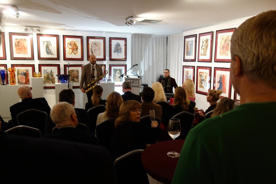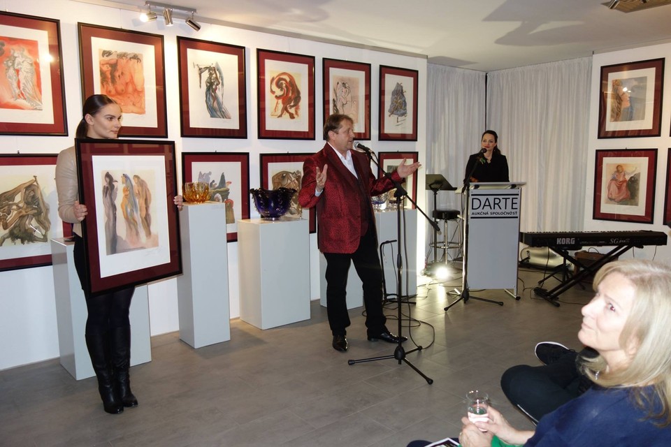 Krst vázy menom Medulienka.Bratislavská DARTE Gallery v Podunajských Biskupiciach sa v stredu stala miestom konania vernisáže autorskej výstavy speváčky a výtvarníčky umeleckého skla Terézie Pekaríkovej, ktorá ju spojila so sprievodnou výstavou 100 diel Salvatora Dalího s podtitulom Božská komédia.