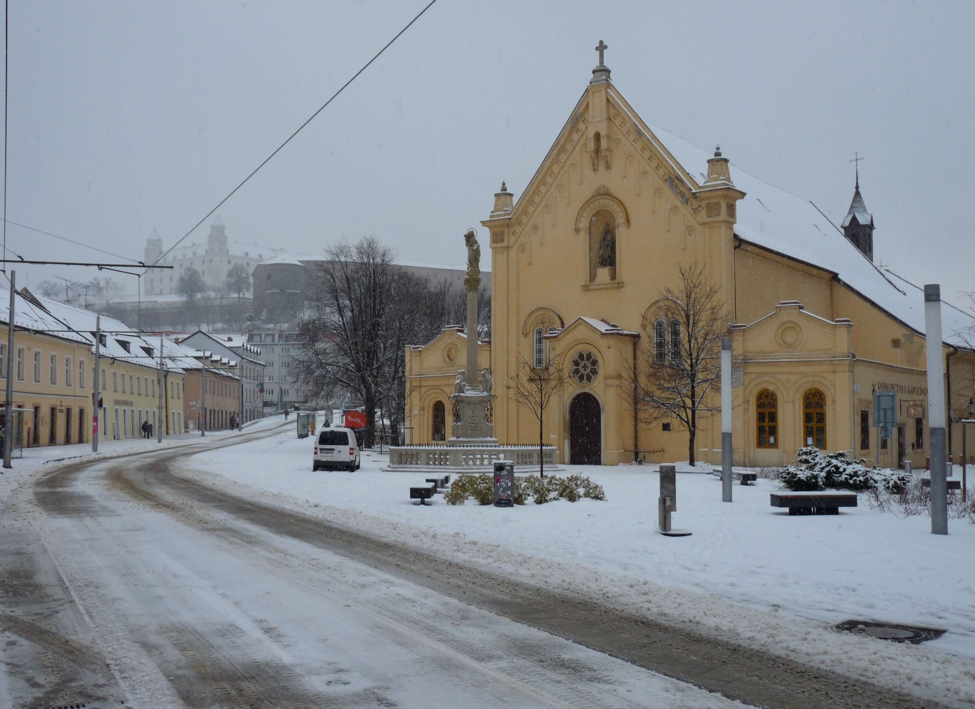 Po snežení v uplynulých dňoch bola električková trať na Kapucínskej ulici chvíľu mimo prevádzky...