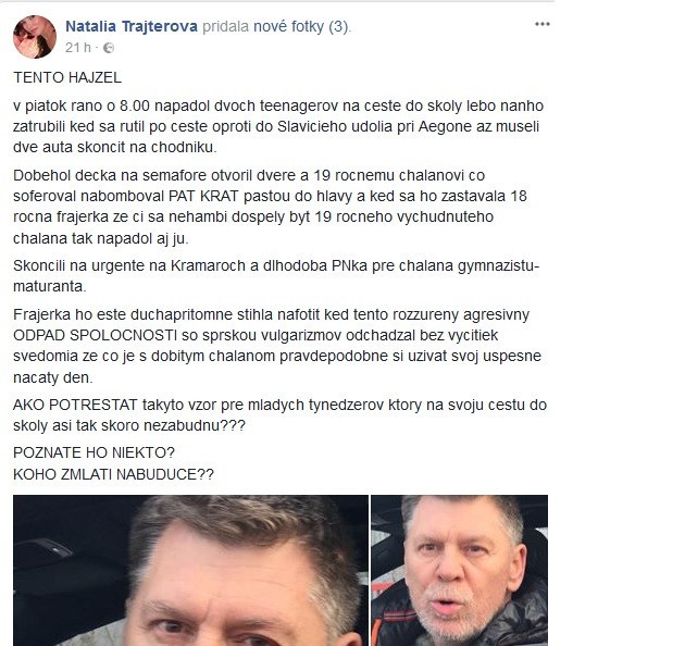 Celú aféru odštartoval status, ktorý zverejnila v utorok pani Natália Trajterová: