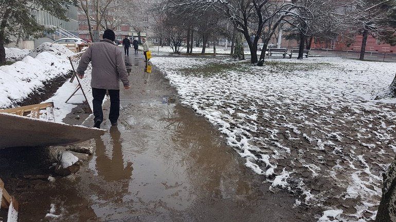 Aj počas zimných mesiacov pokračuje rekonštrukcia podchodu na Trnavskom mýte, čo núti mnohých peších využívať chodníky v jeho bezprostrednom okolí. Tie sú však aj v súvislosti s prebiehajúcimi stavebnými prácami pri vstupoch do podchodu znečistené oveľa viac než predtým, ale napriek tomu evidentne neudržiavané.