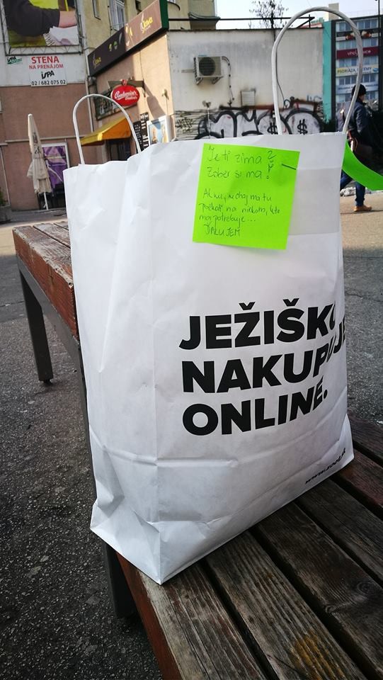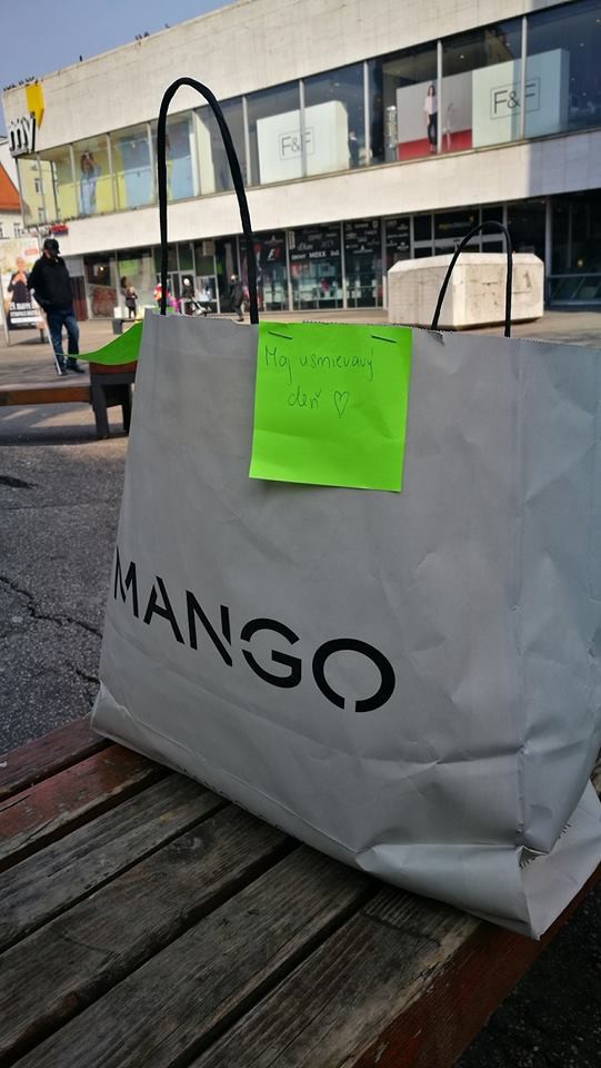 Biele tašky plné teplého zimného oblečenia pre mužov aj ženy si na Kamennom námestí všimol Bratislavčan Adam, ktorý ich aj odfotil a zverejnil na sociálnej sieti s popiskom: "Waw, tak to je naozaj pekné gesto." Jeho príspevok okamžite získal veľkú odozvu a ľudia z jeho okolia vyjadrili nádej či presvedčenie, že sa tie veci dostanú do rúk tým, ktorí ich naozaj najviac potrebujú.