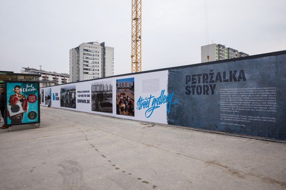 Mohla to byť len ďalšia reklamná stena okolo stavby. Developer CORWIN sa však rozhodol ponúknuť viac ako 180 metrov oplotenia svojej výstavby umeniu. V Petržalke vznikla netradičná Street Gallery Einpark, ktorá prezentuje výstavu raritných fotografií premeny mestskej časti na pravom brehu Dunaja na najväčšie stredoeurópske sídlisko pod názvom Petržalka story.