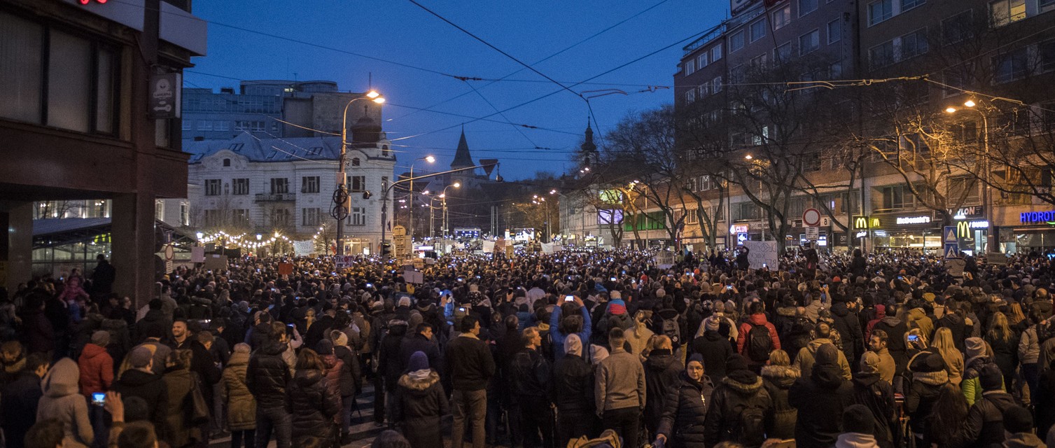 Protest ukončili ľudia spievaním slovenskej hymny. Hoci sa oficiálne skončil, niekoľko stoviek demonštrantov sa presunulo pred budovu úradu vlády. Nikde však nedošlo k žiadnym výtržnostiam.