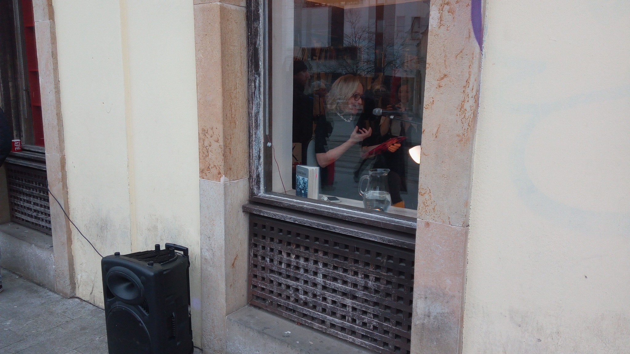 Náhodní okoloidúci a najmä ľudia čakajúci na električku na zastávke Kapucínska zažili včera milé prekvapenie. Z výkladu Mestskej knižnice im čítala jednu z poviedok Jany Micenkovej obľúbená herečka Oľga Belešová. So zvukom problém nebol, priamo pred výklad bol umiestnený reproduktor a kto túžil počúvať dlhšie, mohol bez problémov vstúpiť i do vykúrených priestorov knižnice. Možnosť zažiť interpretáciu literárneho diela v podaní skutočného profíka sa predsa nevyskytne každý deň.