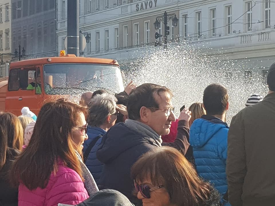 Pamätnými sa stali najmä kropiace vozy, ktoré na dav striekali vodu, napriek tomu, že v ten deň husto pršalo...