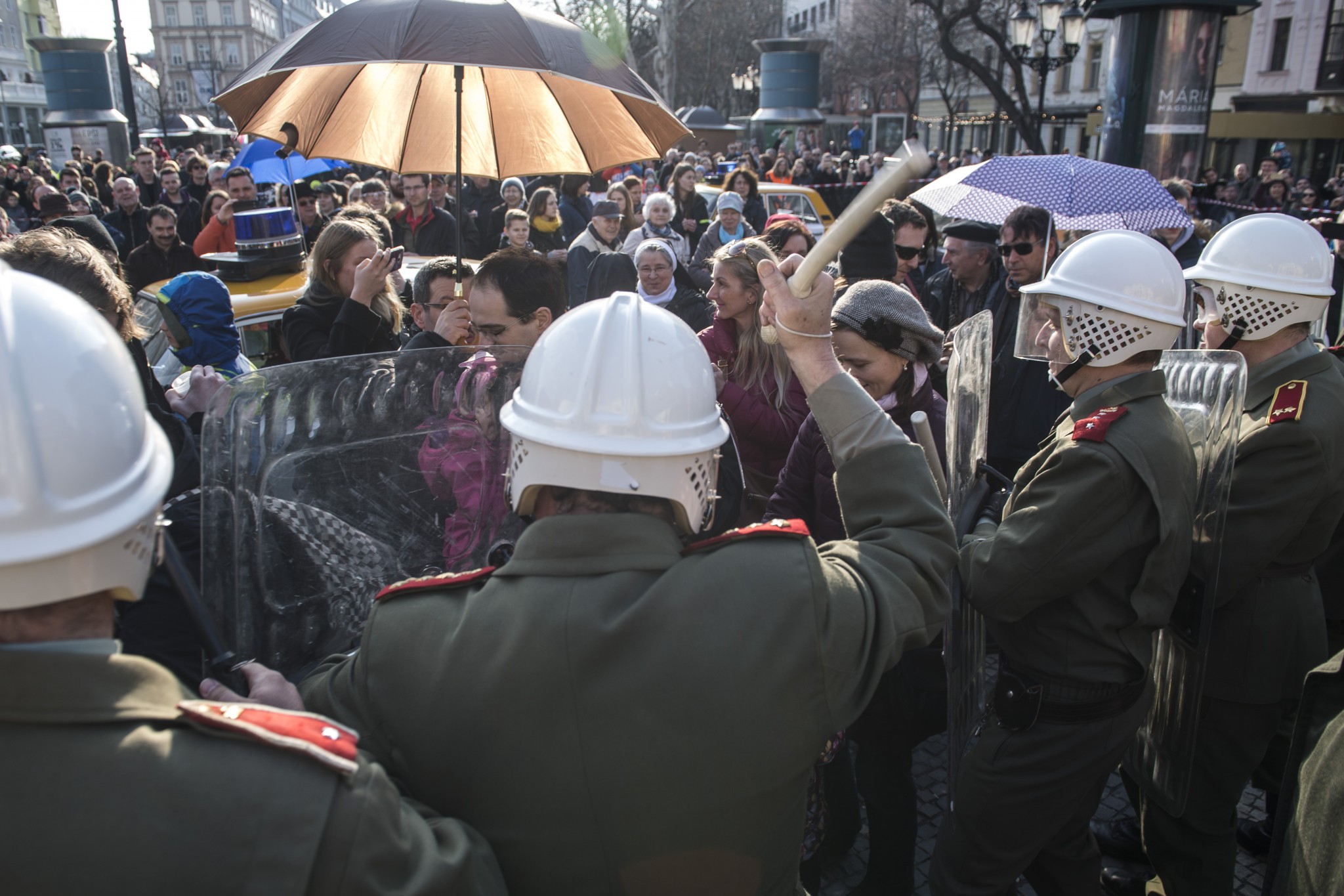 Príslušníci Verejnej bezpečnosti vyzbrojení obuškami a štítmi bili pred 30 rokmi veriacich...