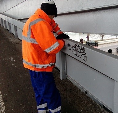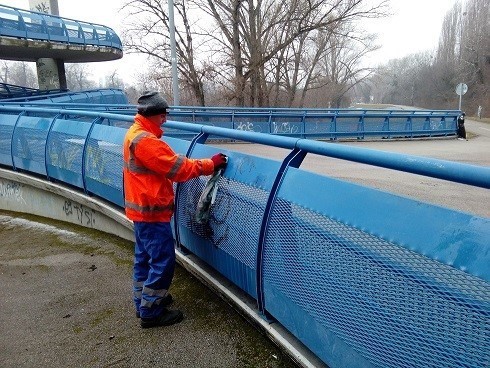 Na Moste SNP a Moste Apollo práce zahŕňali aj nelegálne odstraňovanie nelegálnych grafitov.