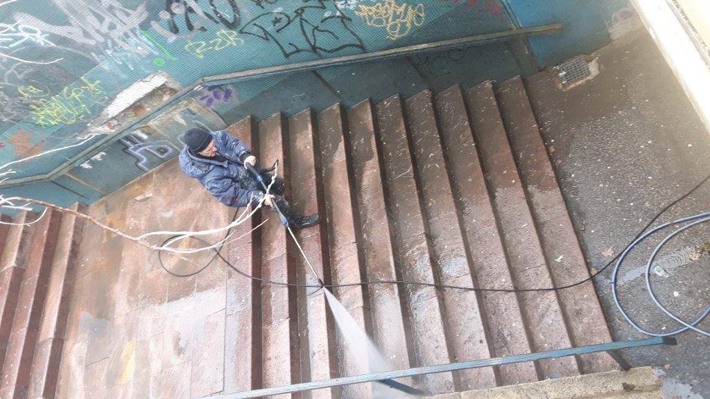 V týchto dňoch prebiehali čistiace práce v bratislavských podchodoch pre peších, napríklad na Karloveskej ulici. Išlo o vyčistenie podláh, umytie prístreškov, vyčistenie stropov, stien.