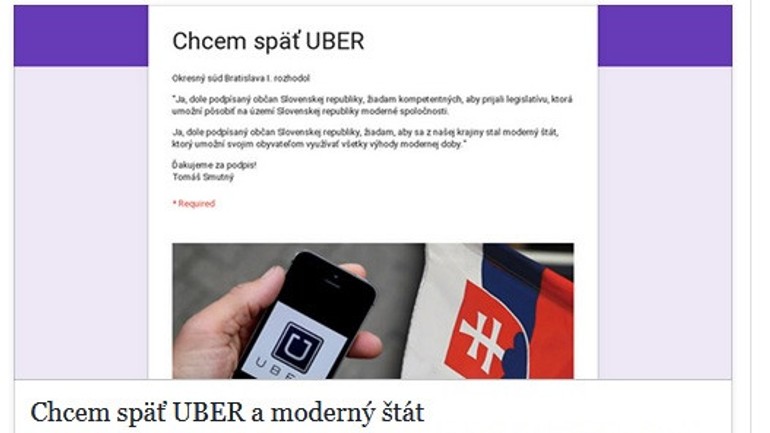 Po tom ako Okresný súd Bratislava I. rozhodol o tom, že Uber na Slovensku nesmie fungovať tak ako doteraz, sa táto spoločnosť v stredu naozaj rozhodla pozastaviť svoje služby v oblasti prepravy osôb na území nášho hlavného mesta. Následne vznikla petícia a jedným z jej cieľov je práve návrat Uberu...