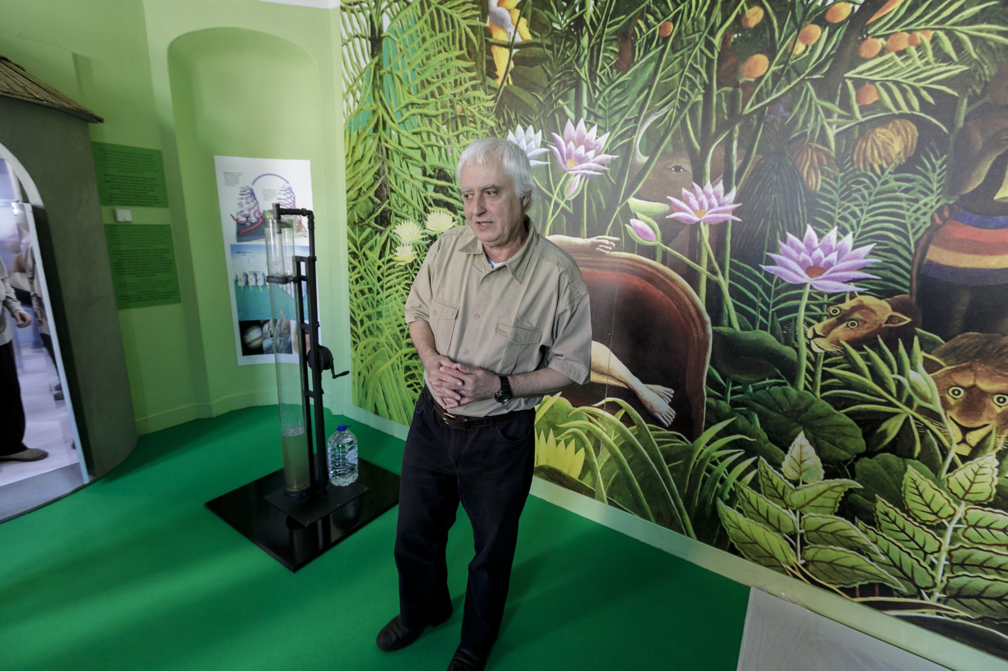 „Chceme vzbudiť zvedavosť o všedné veci, ktoré nás sústavne obklopujú a ktoré môže človek svojím konaním ovplyvniť k lepšiemu. V piatich častiach sú sprístupnené vedecké poznatky o slnečnej sústave, zemskej atmosfére, mrakoch, vzniku vetra, cyklónov a tornád až po predpoveď počasia,“ zdôvodnil iniciátor a autor výstavy Ondrej Slivka (na spodnej fotografii), ktorý navrhol aj jej výtvarno-priestorové riešenie.