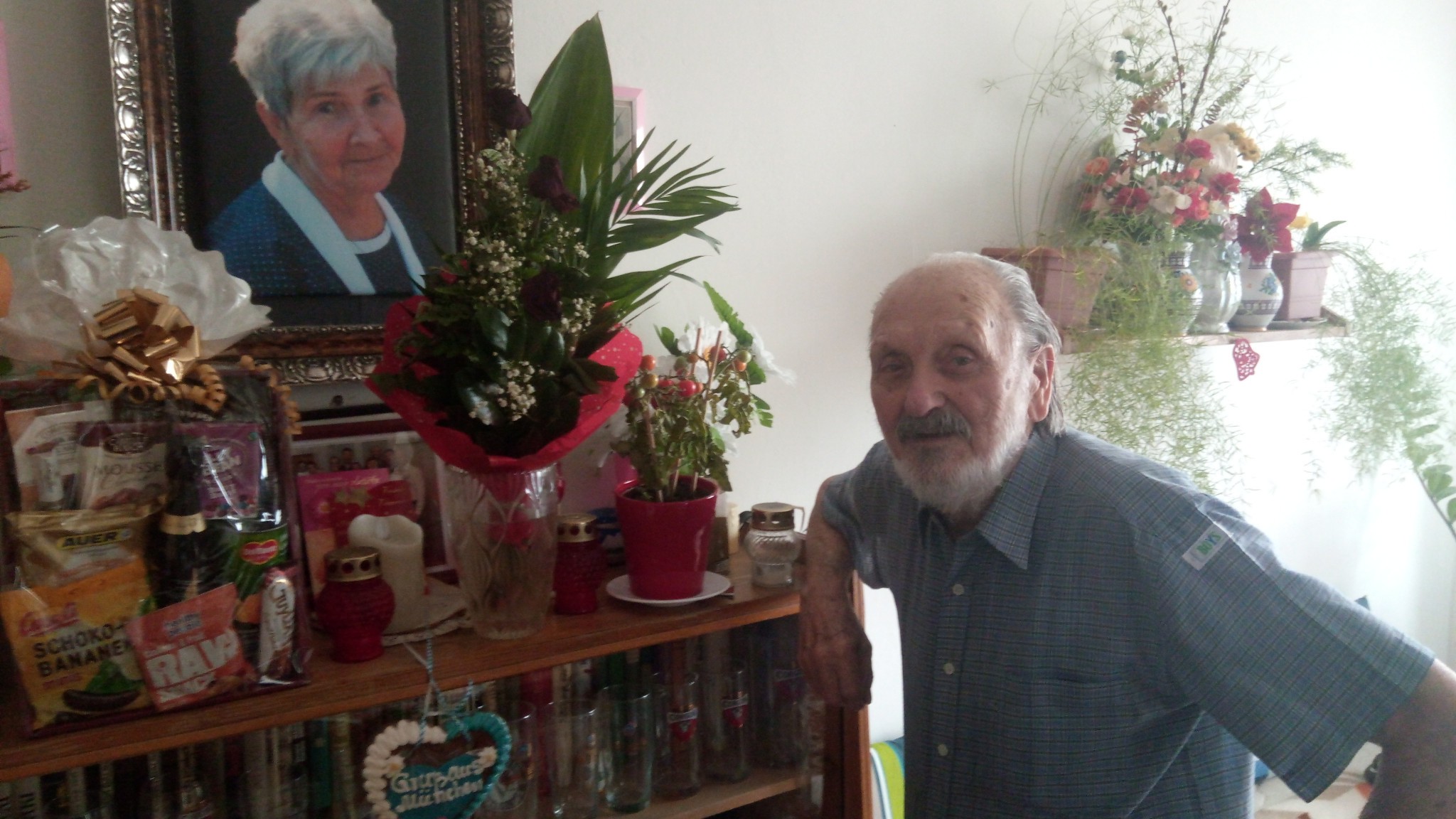 Ferko Štamberský pózuje pri portréte svojej nebohej manželky v ružinovskom dome seniorov.