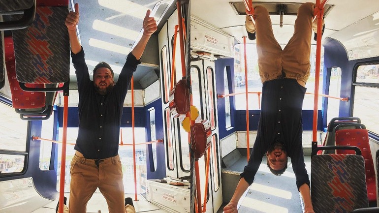 FOTO: Kandidát na bratislavského primátora sa v električke zahral na netopiera a zavesil sa dole hlavou!