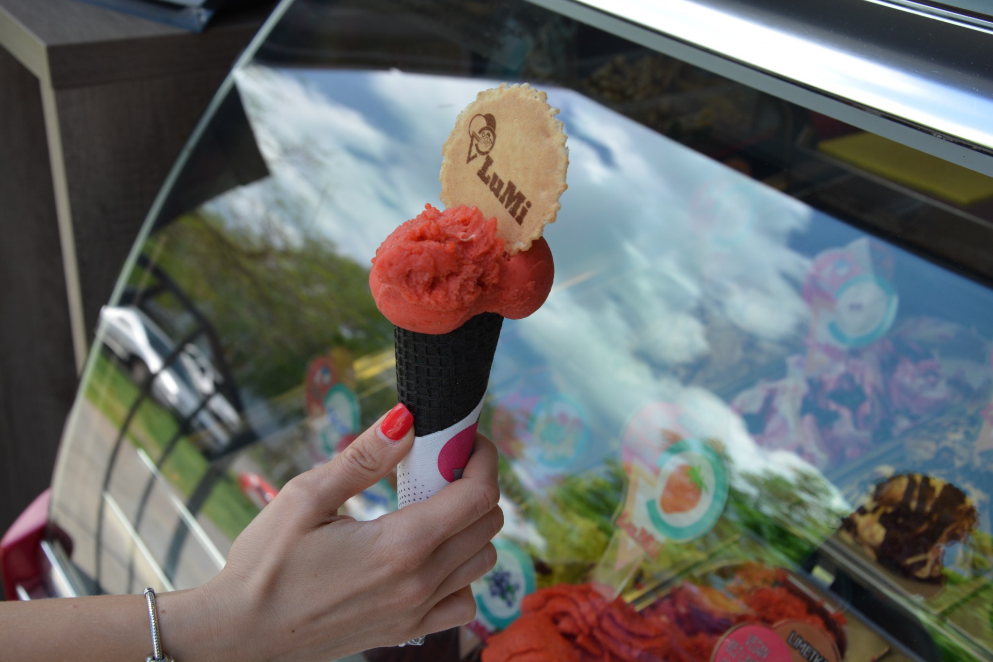 V testovaní sme pokračovali a naše kroky smerovali do Petržalky do zmrzlinového stánku LuMi. Fungujú už ôsmy rok a v ponuke majú každý deň 21 druhov, ktoré pripravujú tradičným talianskym spôsobom. Je to zmrzlina vyrobená z talianskych pást, z rakúskych surovín a slovenského domáceho ovocia. Ochutnali sme jahodový sorbet, keďže je to v každej zmrzlinárni náš favorit. Bol naozaj osviežujúci a chutil ako skutočné zamrazené jahody. Pravdepodobne išlo o skutočnú domácu výrobu, v sorbete boli kúsky jahôd, mal plnú chuť a bol poriadne zmrazený. Majiteľka nám prezradila, že v 3,5 kg zmrzlinovej vaničke sa nachádza až 3 kg čerstvých jahôd! Zaujímavé boli príchute dračie ovocie, limetka či červený pomaranč pre tých, ktorí obľubujú skôr osviežujúce, nie príliš sladké zmrzliny. Výborný bol tiež slaný karamel. V ponuke majú zmrzliny vegánske, bezlepkové a s označením DIA, ktoré sú sladené stéviou. Majiteľka nás informovala, že mávajú v ponuke aj ALKO zmrzliny, napríklad pivo alebo likér, avšak v čase našej návštevy také v ponuke nemali. Vyrábajú sa zo skutočných alkoholov, preto nie sú vhodné pre mladších ako 18 rokov.