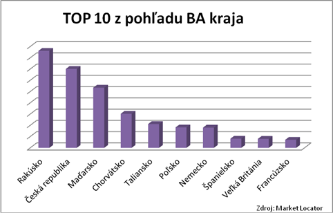 Bratislavské noviny pochopiteľne zaujímalo aj to, kam do zahraničia najčastejšie cestujú obyvatelia Bratislavského kraja. V rebríčku TOP 10 krajín sa na prvom mieste umiestnilo Rakúsko. Graf vznikol počas obdobia od mája 2017 do apríla /2018 a boli do neho zarátané jedine pobyty dlhšie ako 7 dní a kratšie než mesiac.