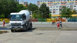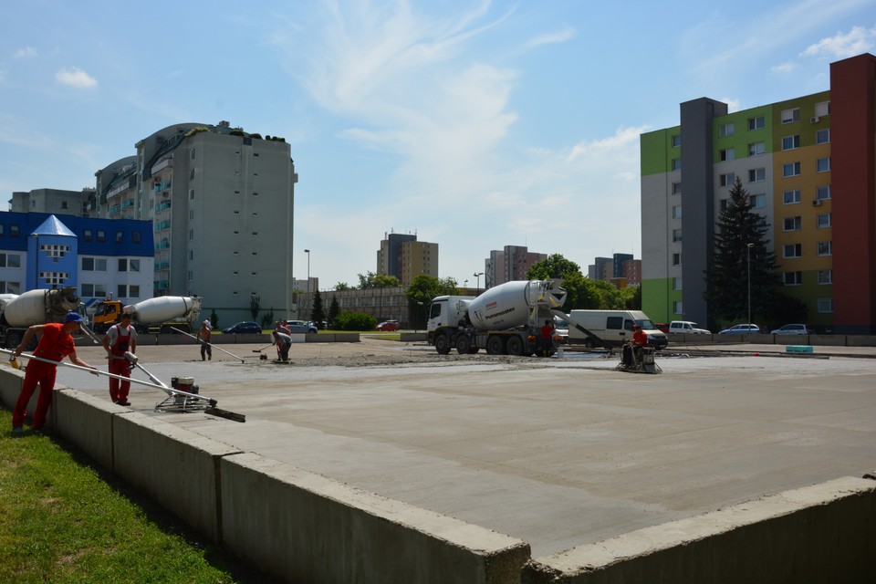 Aj Bratislavské noviny sa boli v piatok na prebiehajúce terénne práce pozrieť a na mieste bolo v čase našej návštevy niekoľko nákladných áut – miešačiek, ktoré sem vozili betón a ten vylievali na miesto, kde už čoskoro vybudujú úplne nové – multifunkčné športovisko.
