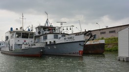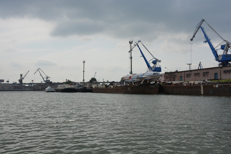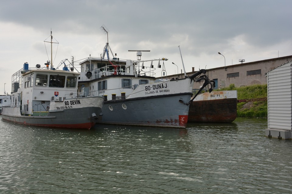 Našu návštevu lokality prezývanej hovorovo aj „nákladný prístav“ začíname v pracovný deň predpoludním kúsok od Prístavného mosta, kde sa nachádza vchod do tohto stráženého areálu, kam nemá verejnosť bežne prístup. Služobným autom sa presúvame k brehu tzv. zimného prístavu, ktorý sa začal stavať v roku 1897. Tu je už pristavená pracovná loď menom Merry Fisher 795 a jej kapitán nás pozýva na palubu. Usádzame sa v zadnej časti lode, ktorá vyzerá skôr ako väčší motorový čln a je relatívne nová. Vyrážame veľmi pomaly cez bazén, okolo ktorého je niekoľko prístavných mól i plavidiel najrôznejšieho typu a druhu. Naľavo sme videli na brehu staršiu loď, ktorá mala slúžiť ako herňa, diskotéka či plávajúce kasíno. Majiteľ ju chcel pôvodne opraviť, ale asi sa mu to neoplatilo, lebo postupne chátra a mení sa na vrak. Po chvíli míňame aj „raketu“, ako sme v detstve prezývali rýchlolode, ktoré brázdili vody Dunaja už v časoch nášho detstva, keď bol ešte pravý breh rieky od Devína až po Petržalku chránení pohraničiarmi.
