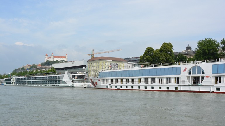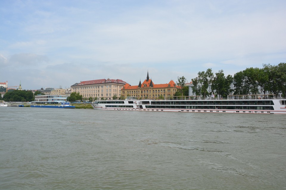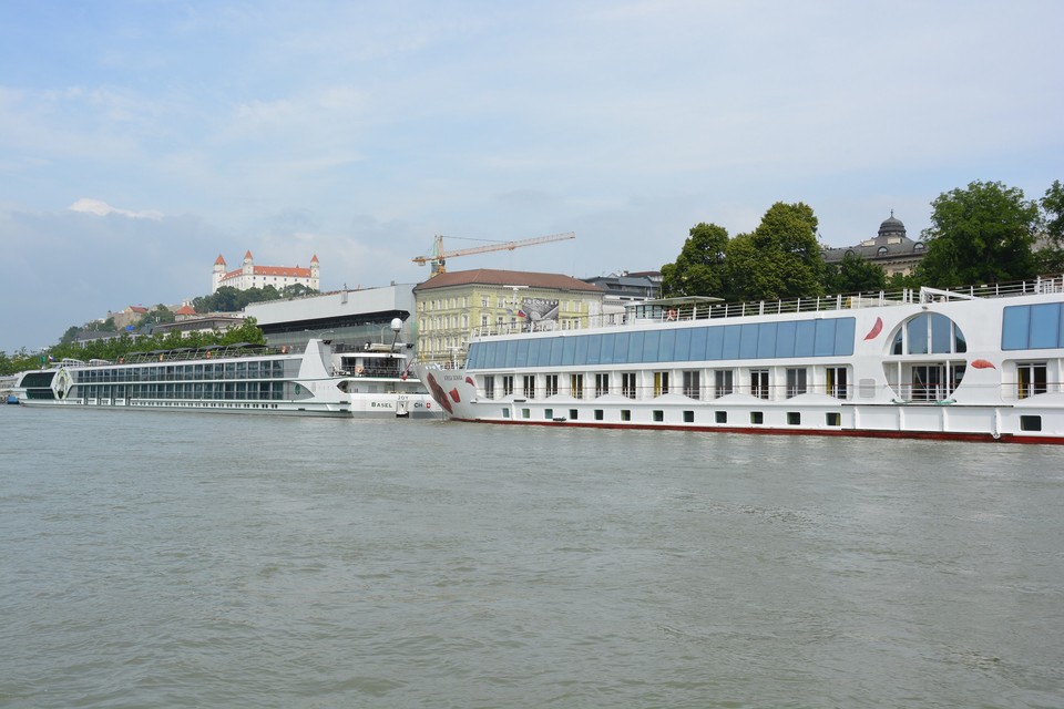 Od Starého mosta k Mostu SNP sa plavíme povedľa veľkých výletných lodí najmä zo zahraničia, ktoré sú ukotvené v blízkosti Osobného prístavu. Niektoré sú naozaj obrovské a vyzerajú veľmi moderne a honosne. Škoda len, že väčšina turistov príde do našej metropoly len na pár hodín, pozrú si hrad, centrum mesta, Katedrálu sv. Martina a potom idú loďou naspäť do Budapešti či Viedne, kde aj prespia. Naša kontrolná loď sa blíži aj k mólam, ktoré sú prázdne a meria pri nich hladinu vody. Kontrolujeme, či by pri nich mohli výletné lode „zaparkovať“. Každá z nich má totiž iný ponor, záleží od konštrukcie a celkového zaťaženia. Cestou k Mostu Lafranconi stretávame aj policajný čln. Až následne sa dozvedáme, že v ten deň hľadali neznámu osobu, ktorá mala skočiť do Dunaja. Zatiaľ sa našiel len jej ruksak. Policajtov je viac vo vode aj na brehu, lebo v deň našej inšpekcie sa v Bratislave konalo aj bezpečnostné fórum Globsec. Veľký stan, kde sa medzinárodná konferencia koná, je postavený na Dvořákovom nábreží kúsok od River Parku. Tu vidíme aj súsošie Márie Terézie, o ktorom pred niekoľkými týždňami hlasovali mestskí poslanci, ale s jeho trvalým osadením pred hotelom Carlton na Hviezdoslavovom námestí nesúhlasili.