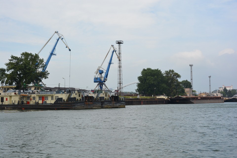Po chvíli sa opäť otáčame, ale chvíľu krúžime v bazéne, lebo na jeho začiatku sa objavuje remorkér a nevieme, či vchádza do prístavu alebo sa tu len otáča. A jedno z hlavných pravidiel pre menšie plavidlá na rieke je také, aby väčším plavidlám zbytočne neprekážali. Počas našej exkurzie sme sa dozvedeli veľa zaujímavostí nielen o tom, ako to na Dunaji funguje, ale aj o štátnej akciovej spoločnosti Verejné prístavy, ktorá u nás existuje už desať rokov a spravuje vymedzené územia vrátane vodnej časti, stavieb a zariadení, ktoré slúžia na prekladanie, skladovanie, opracovanie a dopravu tovarov, naloďovanie a vyloďovanie cestujúcich a ochranu plavidiel pri prechode ľadochodov a povodňových prietokov, ako aj na vykonávanie činností súvisiacich s prevádzkou plavidiel a ich opravou, rekonštrukciou alebo stavbou.