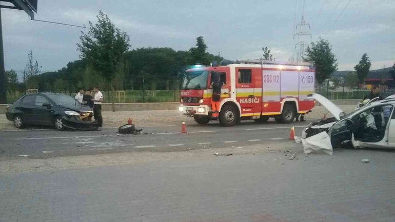 FOTO: Na Rybničnej ulici sa čelne zrazili dva autá - vodiči to našťastie prežili len s ľahkými zraneniami