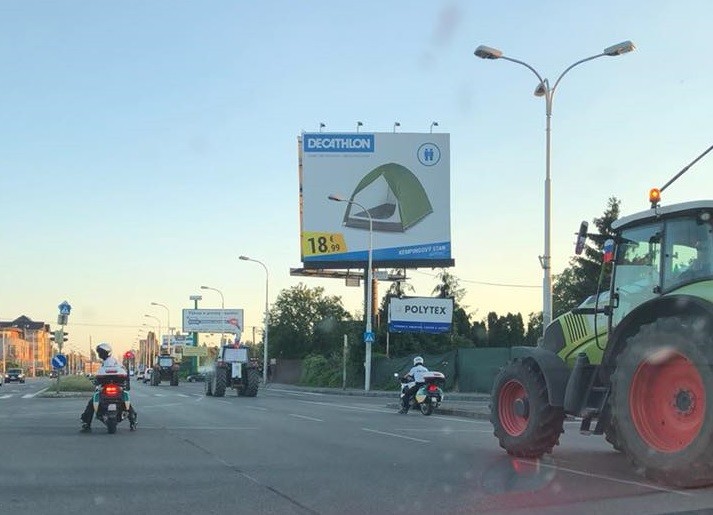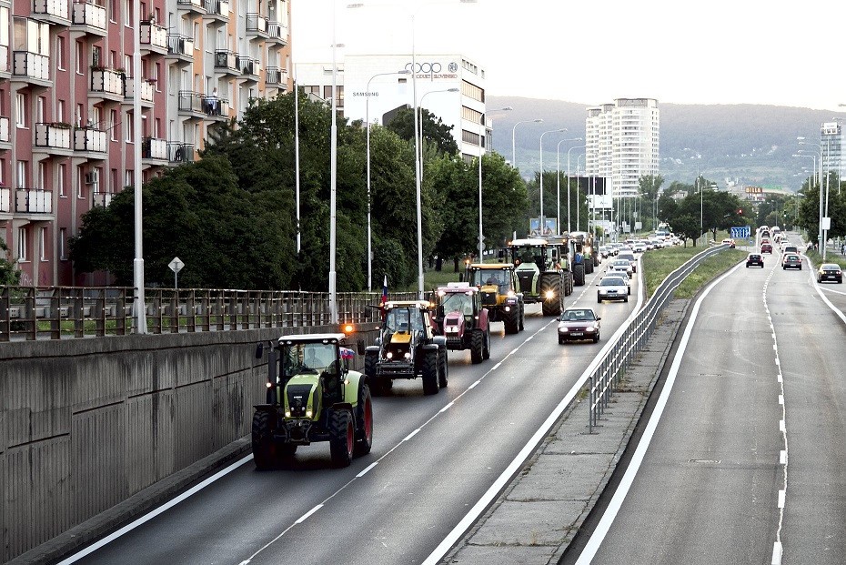 Traktoristov pri ich jazde po Bratislave sprevádzali policajné motorky...