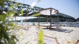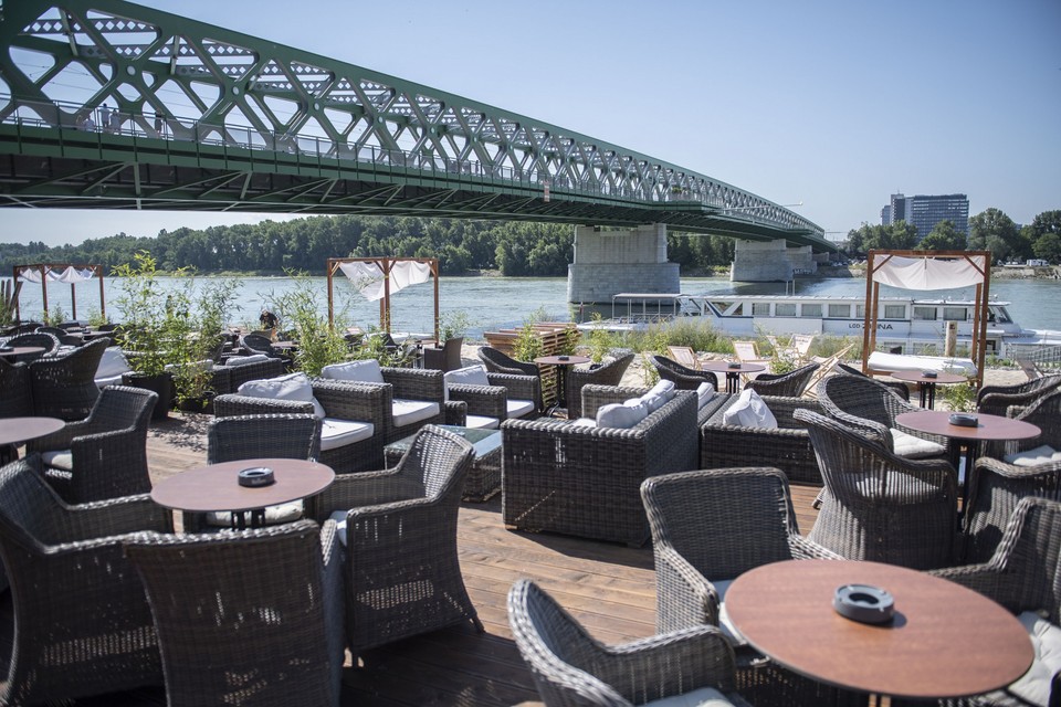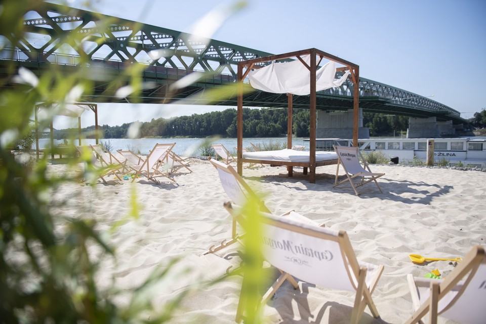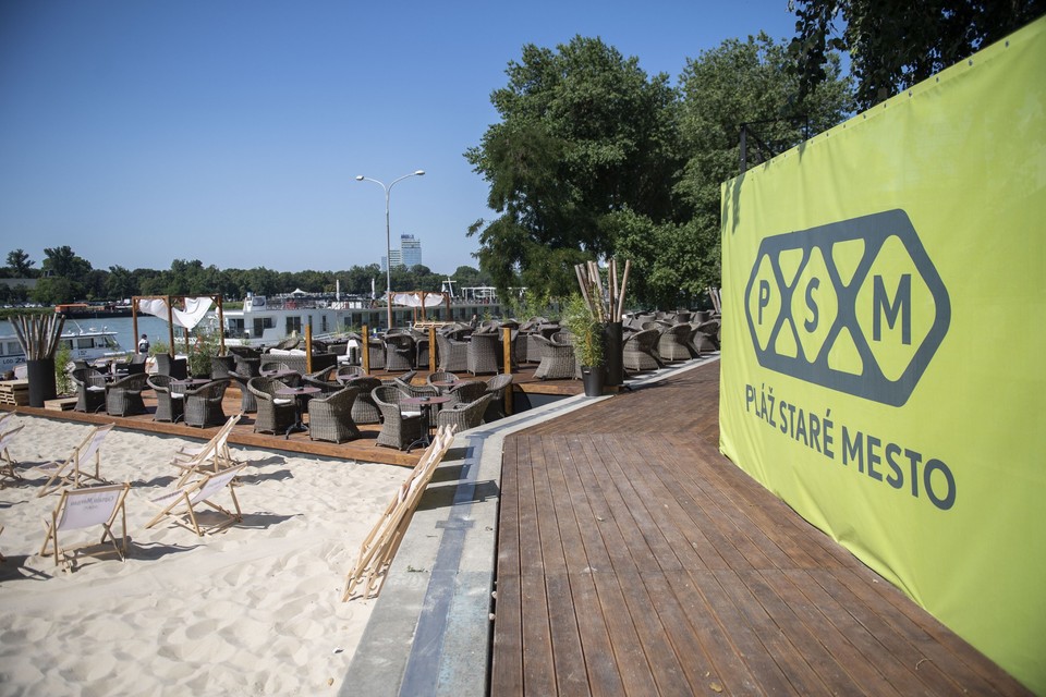 Na Fajnorovom nábreží pri Starom moste v Bratislave už finišujú práce na budovaní novej pláže, bar už otvorili. Rekreovať sa pri vode tak budeme môcť už aj na staromestskej strane Dunaja.