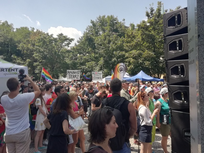 Na PRIDE prišiel aj známy evanjelický teológ Ondrej Prostredník a ombudsmanka Mária Patakyová. Tá na tribúne vyhlásila, že sa na Slovensku z hľadiska práv párov osôb rovnakého pohlavia za posledný rok nezmenilo nič. "Uviedli sme do serióznej spoločenskej diskusie skutočnosť, že sexuálna orientácia nie je otázkou voľby, ale vrodenou danosťou človeka, ktorá sa nemá liečiť, ale rešpektovať? Vnímame, že spoločné dobro vie dlhodobo a stabilne dominovať aj v týchto partnerstvách?" pýtala sa ombudsmanka s presvedčením, že vzájomne sa podporujúce homosexuálne páry prejdú z tieňa na Slnko aj na Slovensku ako v krajine, v ktorej môže žiť každý slobodne a dôstojne.
