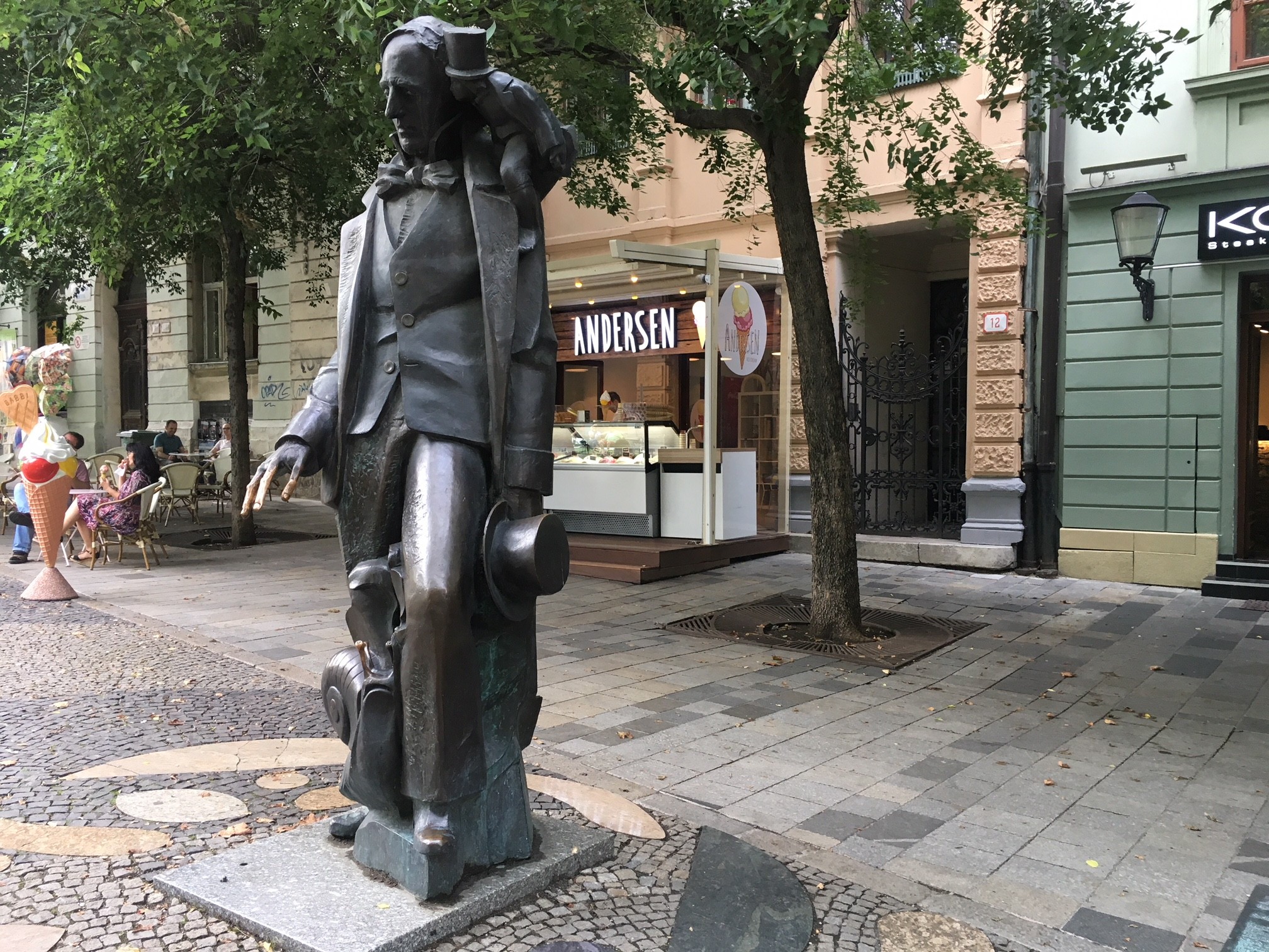 Majitelia zmrzlináreň pomenovali podľa rozprávkara Hansa Christiana Andersena, ktorý Bratislavu navštívil v roku 1841, jeho socha sa v súčasnosti vyníma hneď v tesnej blízkosti zmrzlinárne.