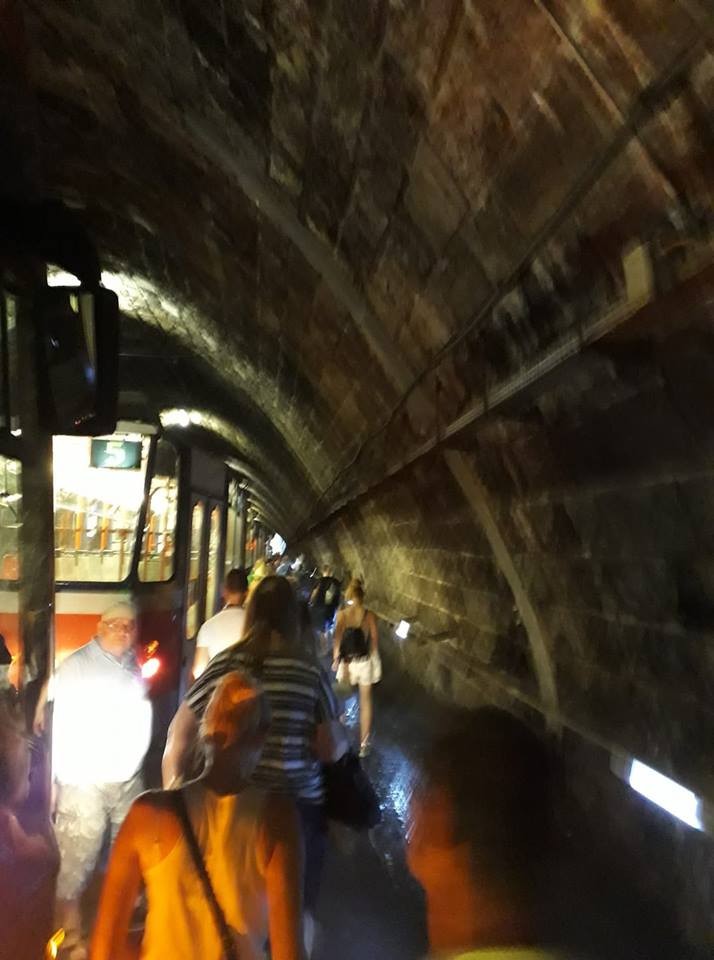 Cestujúcim nezostalo nič iné len si električkový tunel pod Bratislavským hradom peši prešľapať...