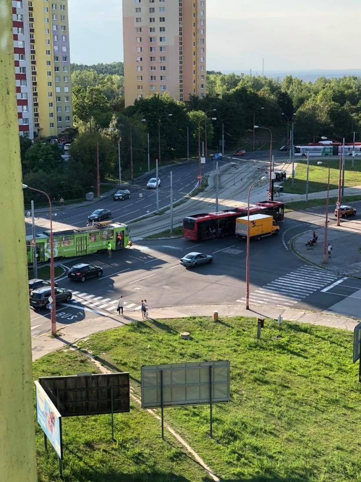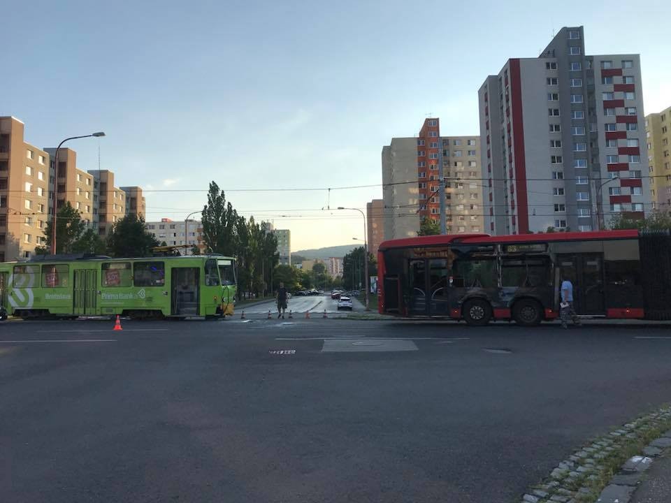 K nehode električky linky č.5, ktorá bola spriahnutá s nasledujúcou električkou linky č.4, došlo v blízkosti obratiska električiek na konečnej v bratislavskej Dúbravke. Cez križovatku na ulici Pri kríži prechádzal autobus linky č.83, ktorý do pokazenej električky narazil.