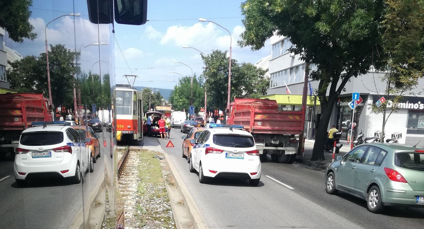 Približne v rovnakom čase sa stala nehoda aj o ulicu - na Račianskej, kde sa pred Bielym krížom zrazila električka idúca smerom do Rače s osobným autom: