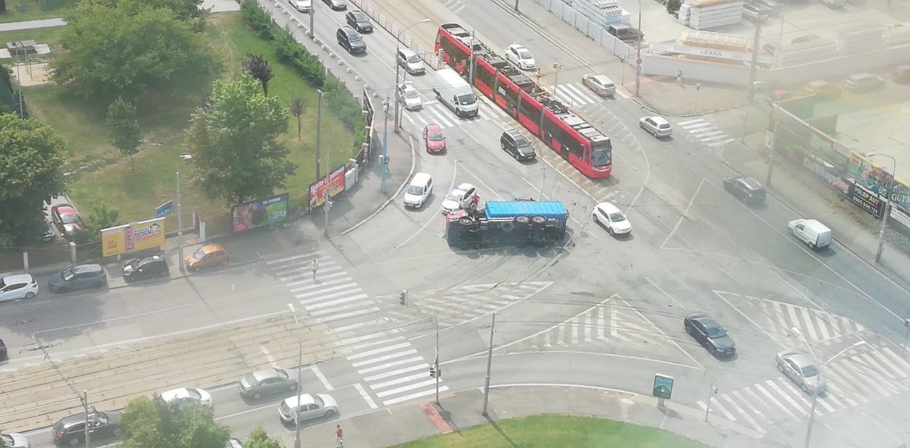 Pred niekoľkými minútami sa na križovatke ulíc Vajnorská a Tomášikova ulica prevrátil nákladný automobil. Zostal ležať na boku priamo na električkovej trati, takže na železničnú stanicu Nové Mesto ani z nej sa momentálne električkou asi nedostanete.